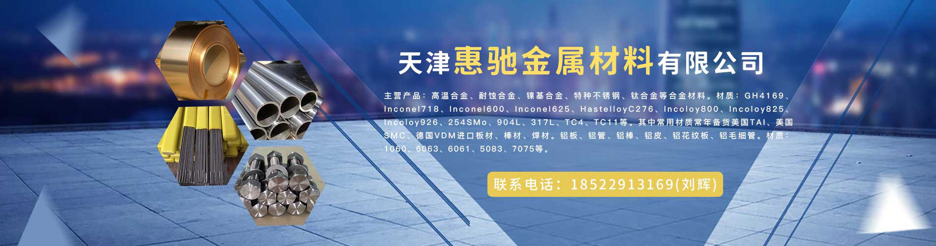 天津惠馳金屬材料有限公司是一家服務(wù)于金屬材料的專業(yè)公司。公司秉承著“專業(yè)、誠信、值得信賴”的經(jīng)營理念,致力合金產(chǎn)品領(lǐng)域提供一流的產(chǎn)品同服務(wù)。我們多年的經(jīng)驗(yàn)同積累,我們的專業(yè)和不斷地創(chuàng)新,我們的誠信和優(yōu)質(zhì)服務(wù), 得到了各行業(yè)客戶的一致肯定和好評(píng),為企業(yè)贏得了卓越商譽(yù)。 ??